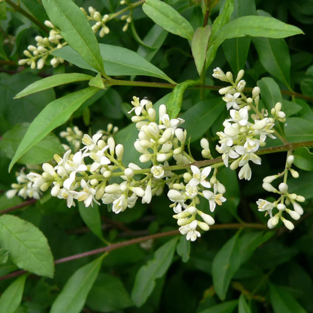 Le Troène commun est un arbuste classique au feuillage dense, idéal pour haies ou bordures. Résistant et facile à tailler, il offre structure et intimité au jardin.